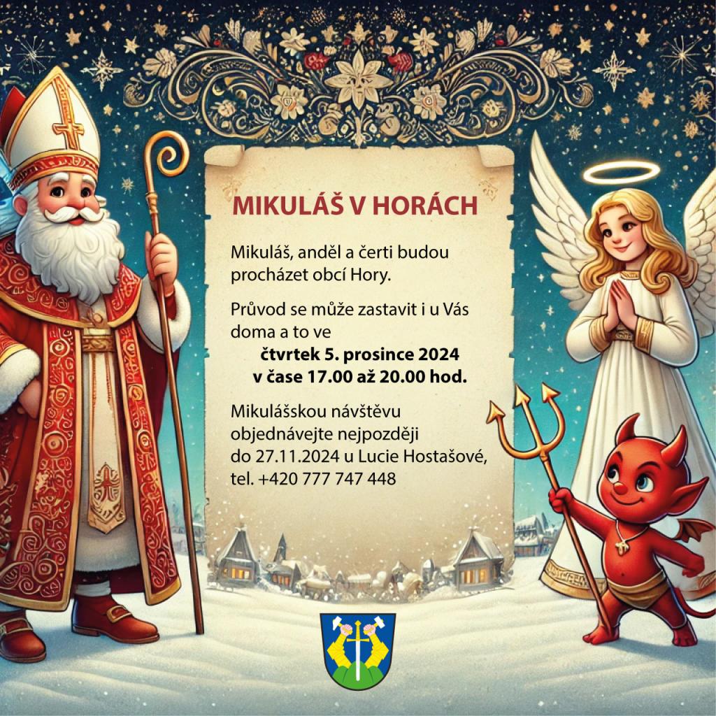 Průvod se může zastavit i u Vás doma a to ve čtvrtek 5. prosince 2024 v čase 17.00 až 20.00 hod. Mikulášskou návštěvu objednávejte nejpozději do 27.11.2024 u Lucie Hostašové, tel. +420 777 747 448