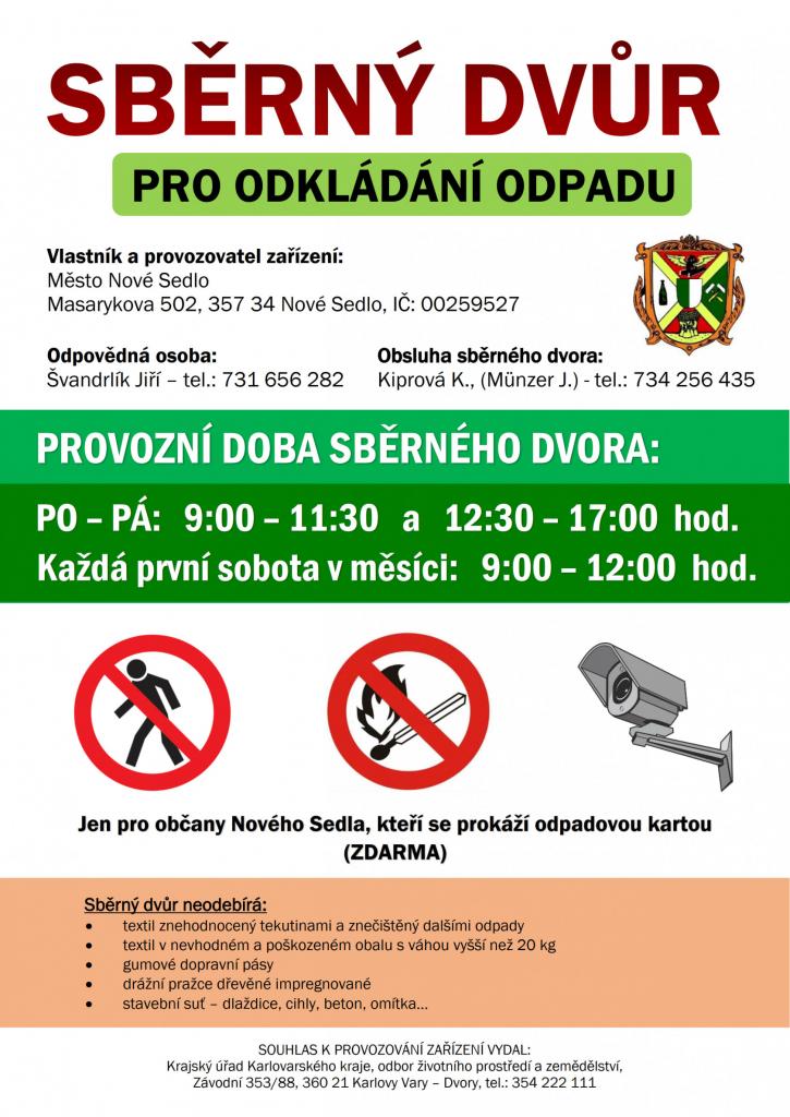 Obec Hory uzavřela s městem Nové Sedlo smlouvu o využívání sběrného dvora pro občany naší obce. Díky tomu již není nutné čekat na přistavení velkoobjemových kontejnerů – občané mohou nyní odvézt větší odpad kdykoli během provozní doby sběrného dvora v Novém Sedle.