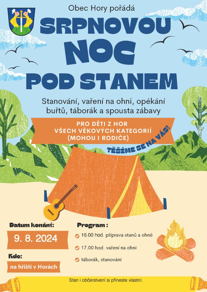 Přijďte v pátek 9.8.2024 stanovat na hřiště, ochutnat jídlo vařené na ohni a posedět u táboráku s kytarou.