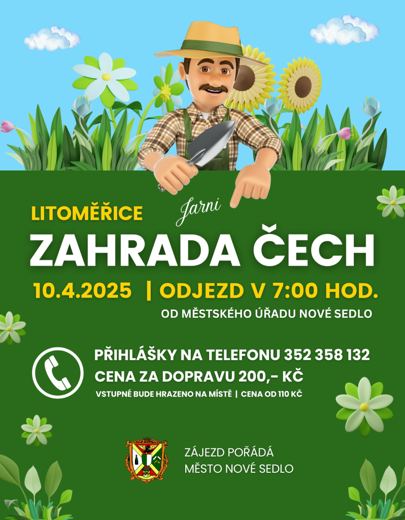 Ve čtvrtek 10.4.2025 pořádá město Nové Sedlo zájezd do Litoměřic na Zahradu Čech.